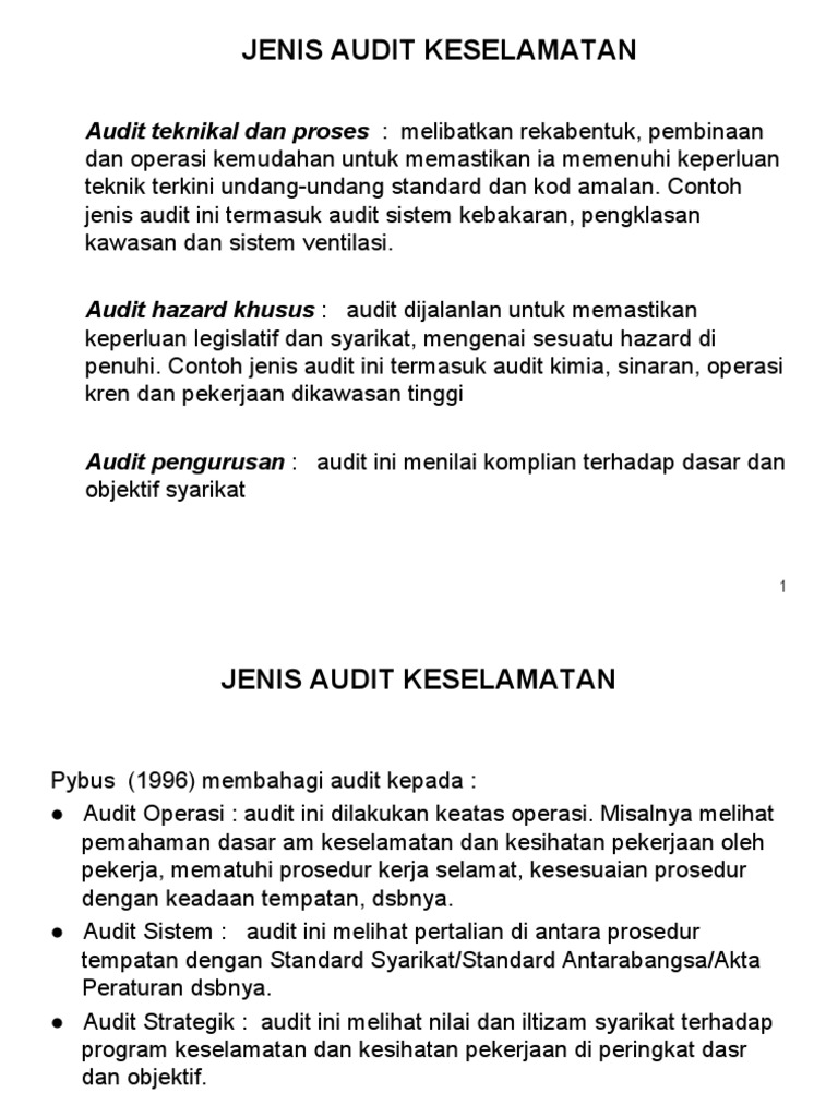 Jenis Audit Keselamatan Amp Laporan Audit Pdf